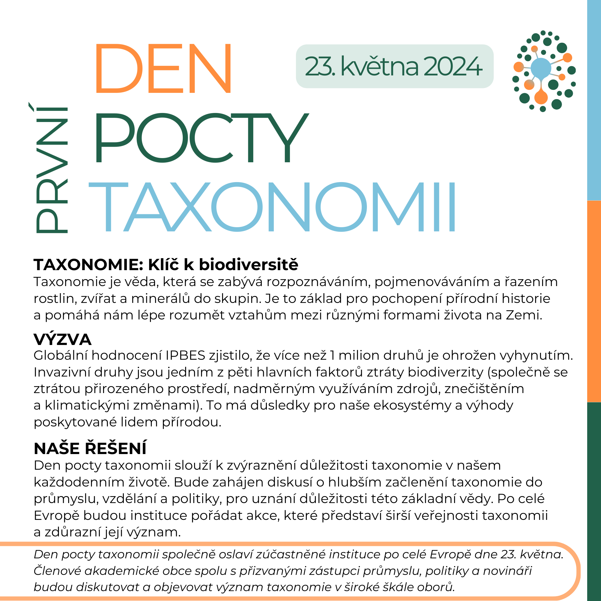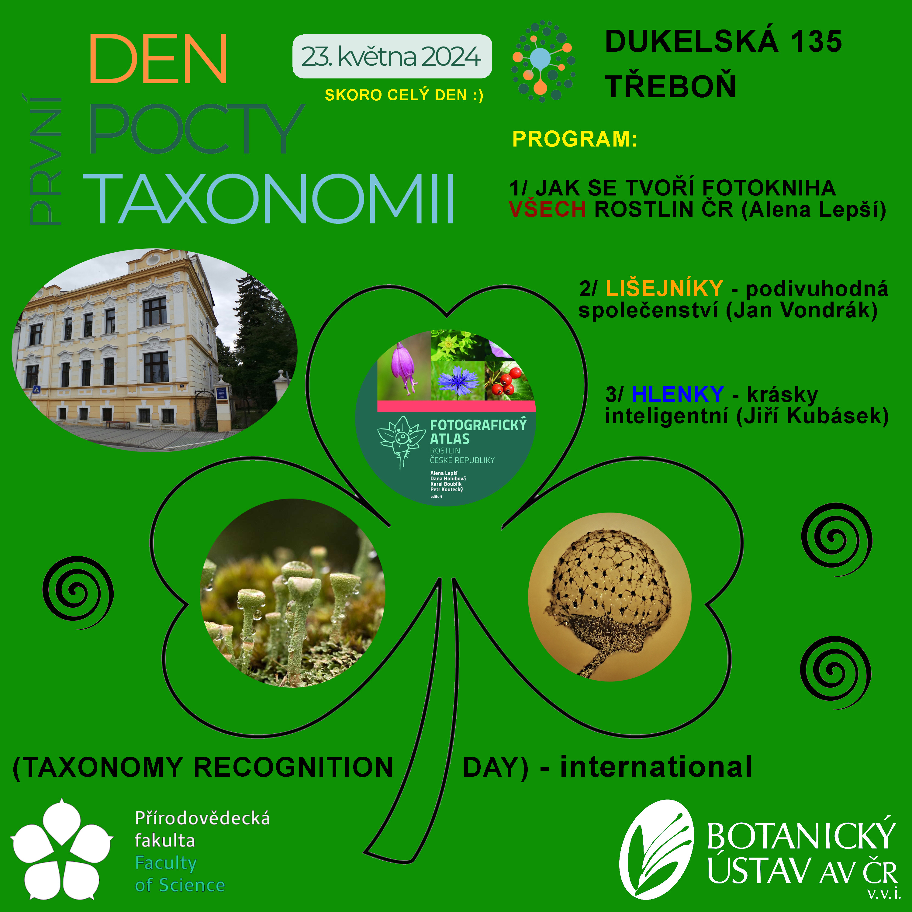 23. května 1707 (tedy před 317 lety) se narodil Carl von Linné, zakladatel moderního systému rostlin, živočichů a hub. Na počest výročí jeho narození se v mnoha zemích světa pořádá "Den pocty taxonomii". U nás je to letos v rámci Dnů otevřených dveří Botanického ústavu v Třeboni (Dukelská 135, Třeboň, viz přiložená grafika). Návštěvníci se mohou těšit na přinejmenším tři vědce a tři témata. 1/ Povídání o rostlinách a připravované (MEGA)knize všech našich a zdomácněných druhů (Dr. Alena Lepší), 2/ Povídání o lišejnících, které připravují půdu pro další tvory a jsou pozoruhodnou evoluční skupinou (Doc. Jan Vondrák) a 3/ Povídání o hlenkách, taky moc zajímavých tvorech, kteří se poslední roky dostávají do módy (Dr. Jiří Kubásek). V rámci Dnů otevřených dveří, které trvají až do soboty 25. května, je ovšem v areálu Botanického Ústavu připraven ještě další rozmanitý program."