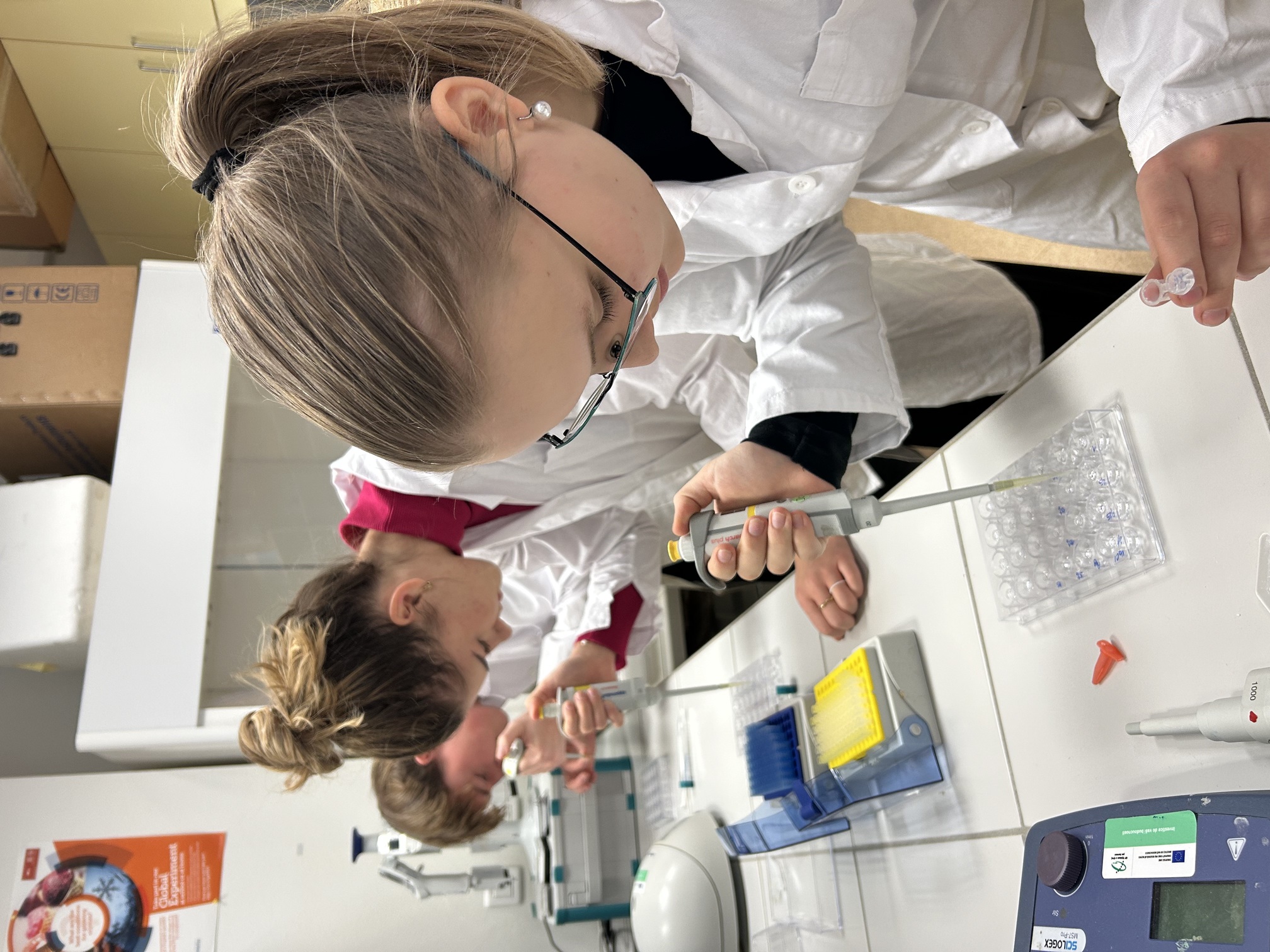Ve čtvrtek 15. ledna navštívily Laboratoř strukturní chemie studentky 1. a 2. ročníku gymnázia EDUCAnet, které se zde v rámci praktické části Chemické olympiády zapojily do laboratorní práce. Pod odborným vedením si vyzkoušely chelatometrické stanovení obsahu vápenatých a hořečnatých iontů v minerální vodě. Během experimentu se seznámily nejen s principy analytické chemie, ale také s prací v moderně vybavené laboratoři a s významem přesných analytických metod v chemické praxi.