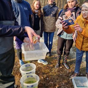 Studenti a studentky Gymnázia Jírovcova v Českých Budějovicích se ze čtvrtka 19.3.2026 na pátek aktivně zapojili do průzkumu na vodu vázaných živočichů společně s hydrobiologem Přírodovědecké fakulty JU Petrem Blabolilem. Cílem byly tůně v PR Vrbenské rybníky, které byly bývalými studenty a studentkami v roce 2017 vytvořeny ke zvýšení místní biodiverzity. V minulém roce byly v Řezanové i Velké u Arpidy zjištěny početné populace především nepůvodních ryb.