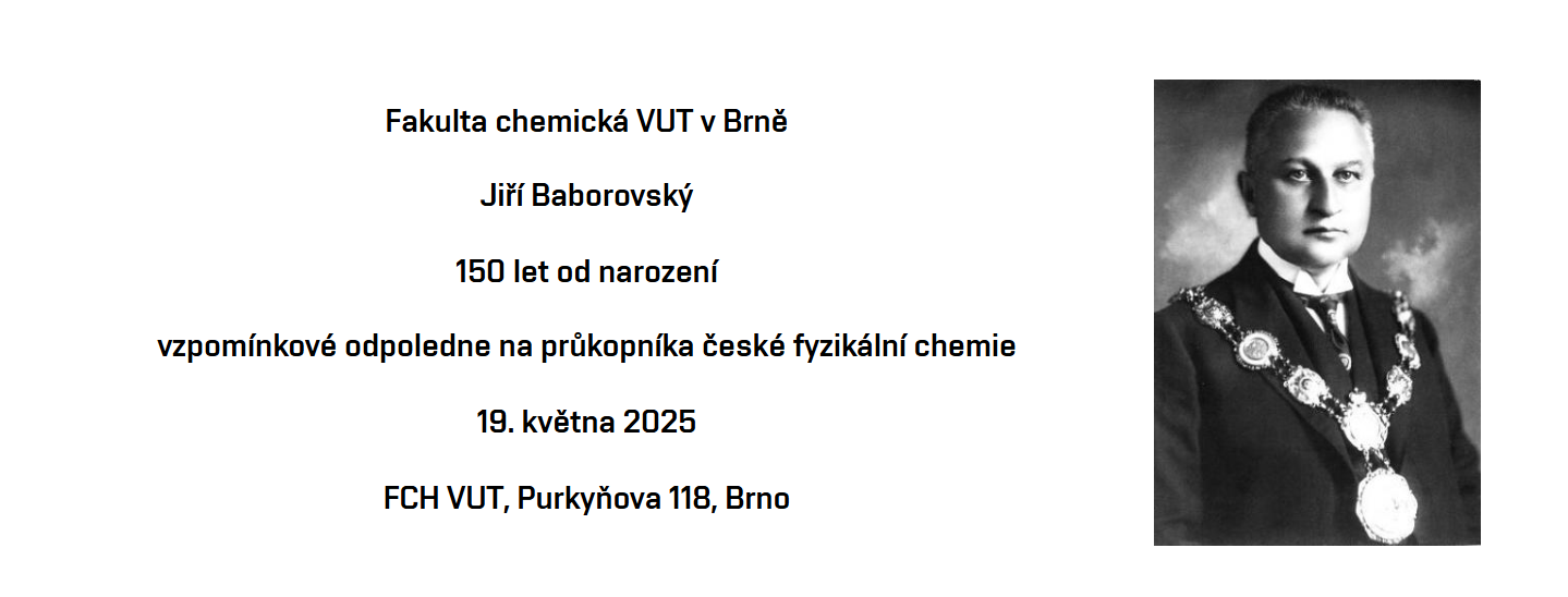 Dovolujeme si vás pozvat na vzpomínkové odpoledne k 150. výročí narození Jiřího Baborovského, významného průkopníka české fyzikální chemie. Akce, kterou pořádá Fakulta chemická Vysokého učení technického v Brně, se bude konat 19. května 2025.