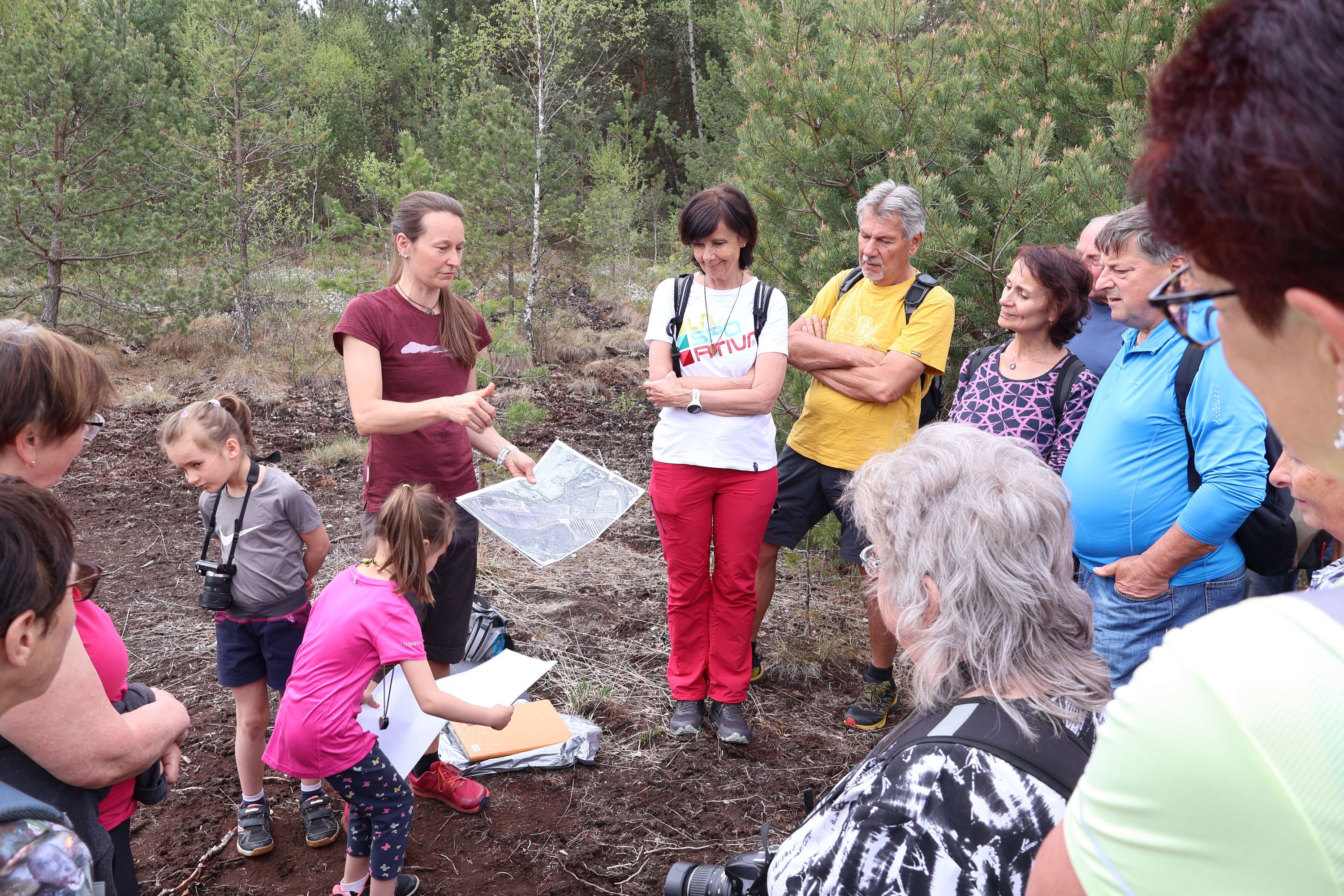 Teoretické poznatky byly doplněny dvěma terénními exkurzemi. První vedla napříč soumarským rašeliništěm, kde účastníci obdivovali pestrá rostlinná společenstva, revitalizované louky a obnovené vodní toky v nivě Vltavy.
