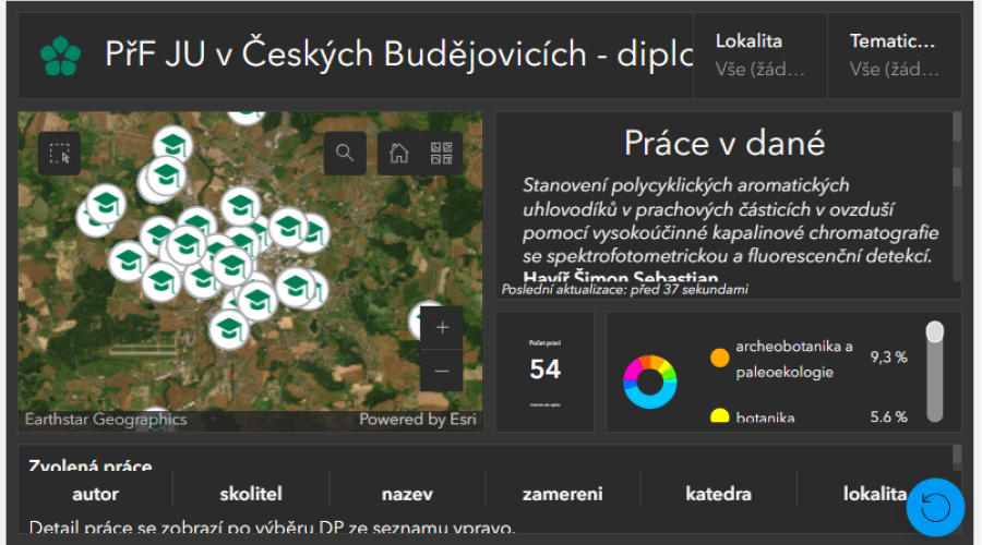 Eva Semančíková a Stanislav Grill z PřF JU zpracovali přehled diplomových prací a odborných studií do interaktivního webu. Řada z těchto prací vznikla ve spolupráci s pracovníky magistrátu města České Budějovice nebo Jihočeského kraje, ať už ve fázi zadání nebo využití výstupů.