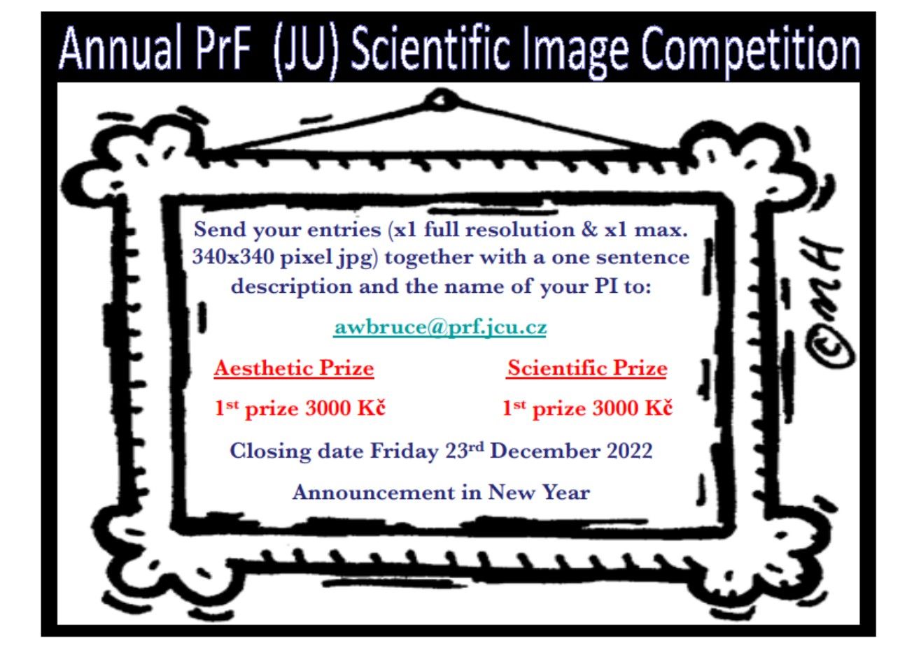 Soutěž je pod záštitou docenta Alexandera W. Bruce (Tato e-mailová adresa je chráněna před spamboty. Pro její zobrazení musíte mít povolen Javascript.). Všechny soutěžící bude hodnotit porota složená z akademických pracovníků katedry s přispěním lajků, které soutěžící získají na naší katedrové facebookové stránce https://www.facebook.com/KMBPrFJU