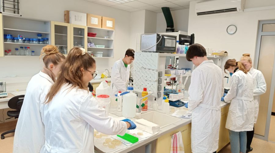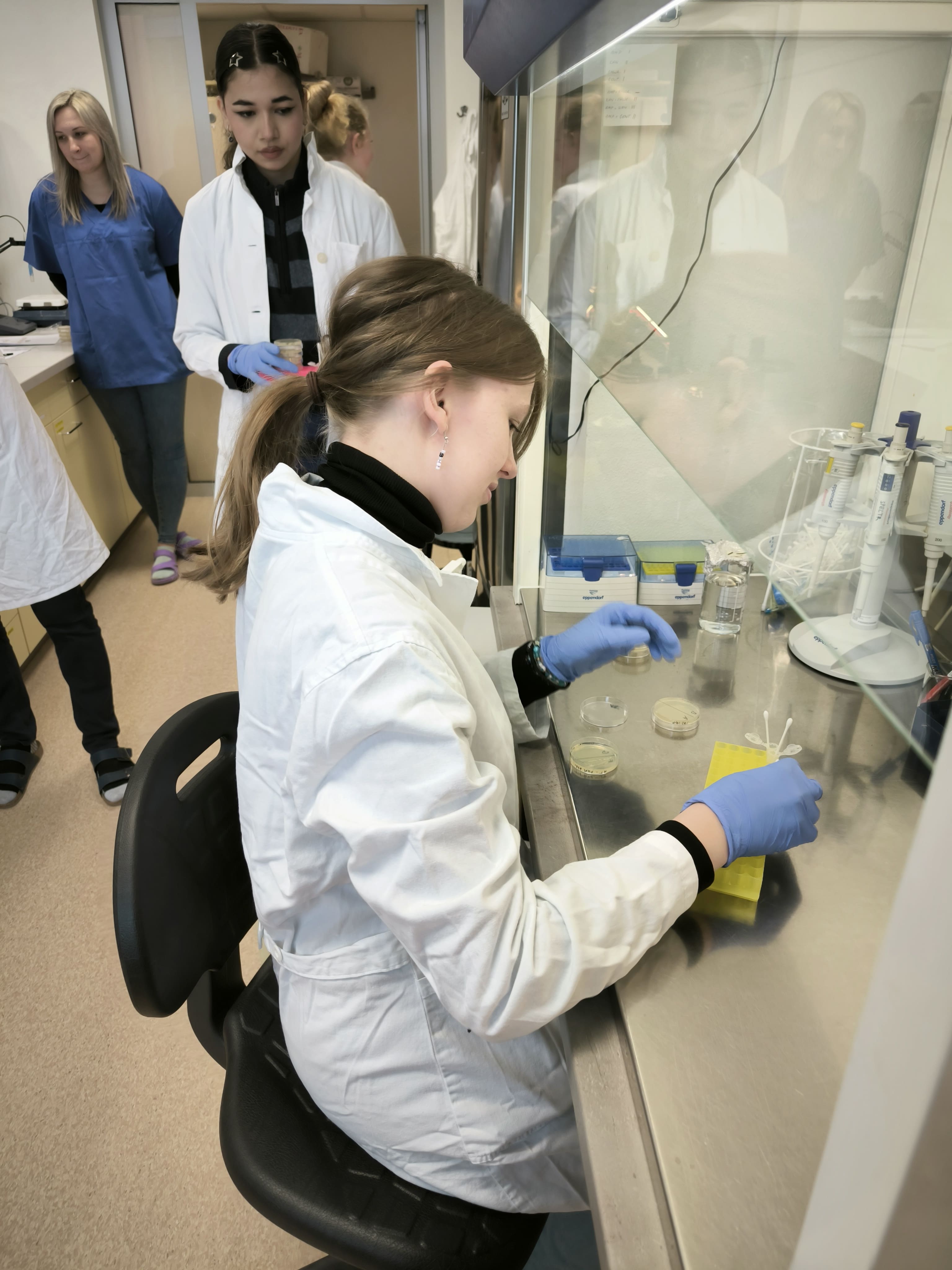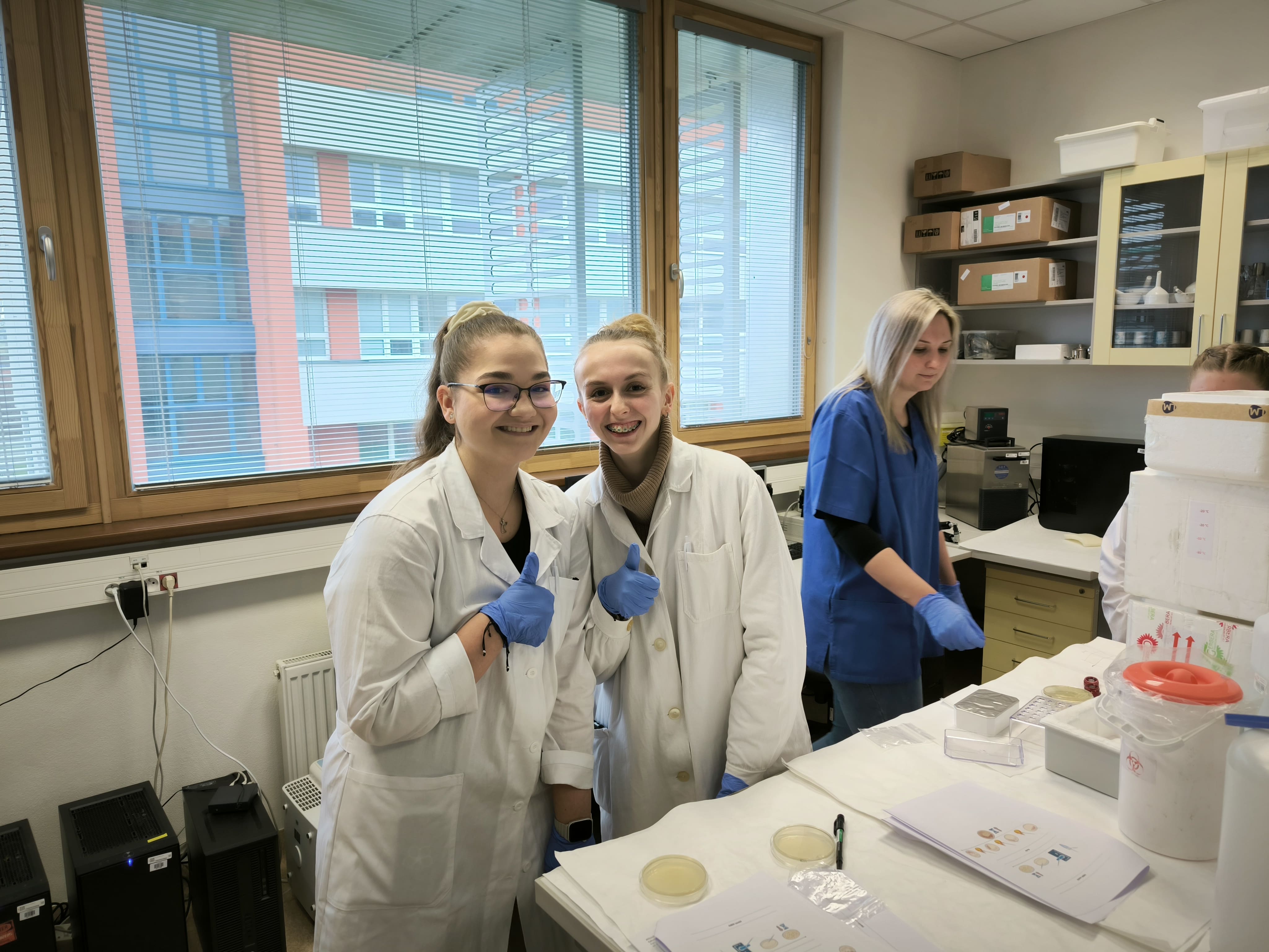 Co nám žije na mobilu a třeba na rukou? Odpověď na tuto otázku ve čtvrtek hledali středoškoláci během dalšího semináře Juniorské univerzity. Kurz s názvem mikrobiolog je zavedl do biochemické laboratoře. Tam se seznámili s principy sterilní práce, vyzkoušeli práci s laboratorním materiálem a bakteriemi. Na závěr si odebrali své vlastní vzorky a teď budou čekat, co zajímavého jim v petriho miskách naroste.