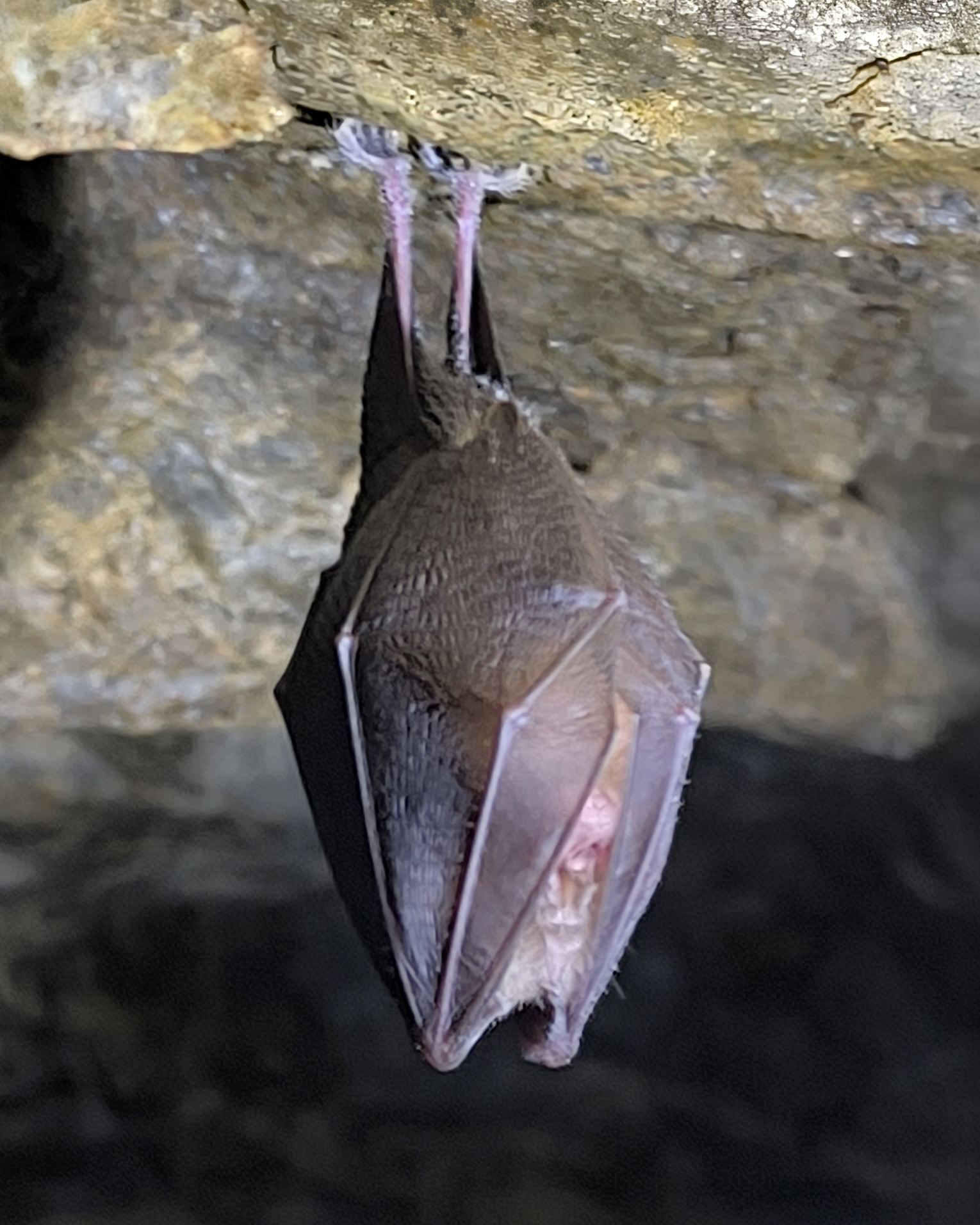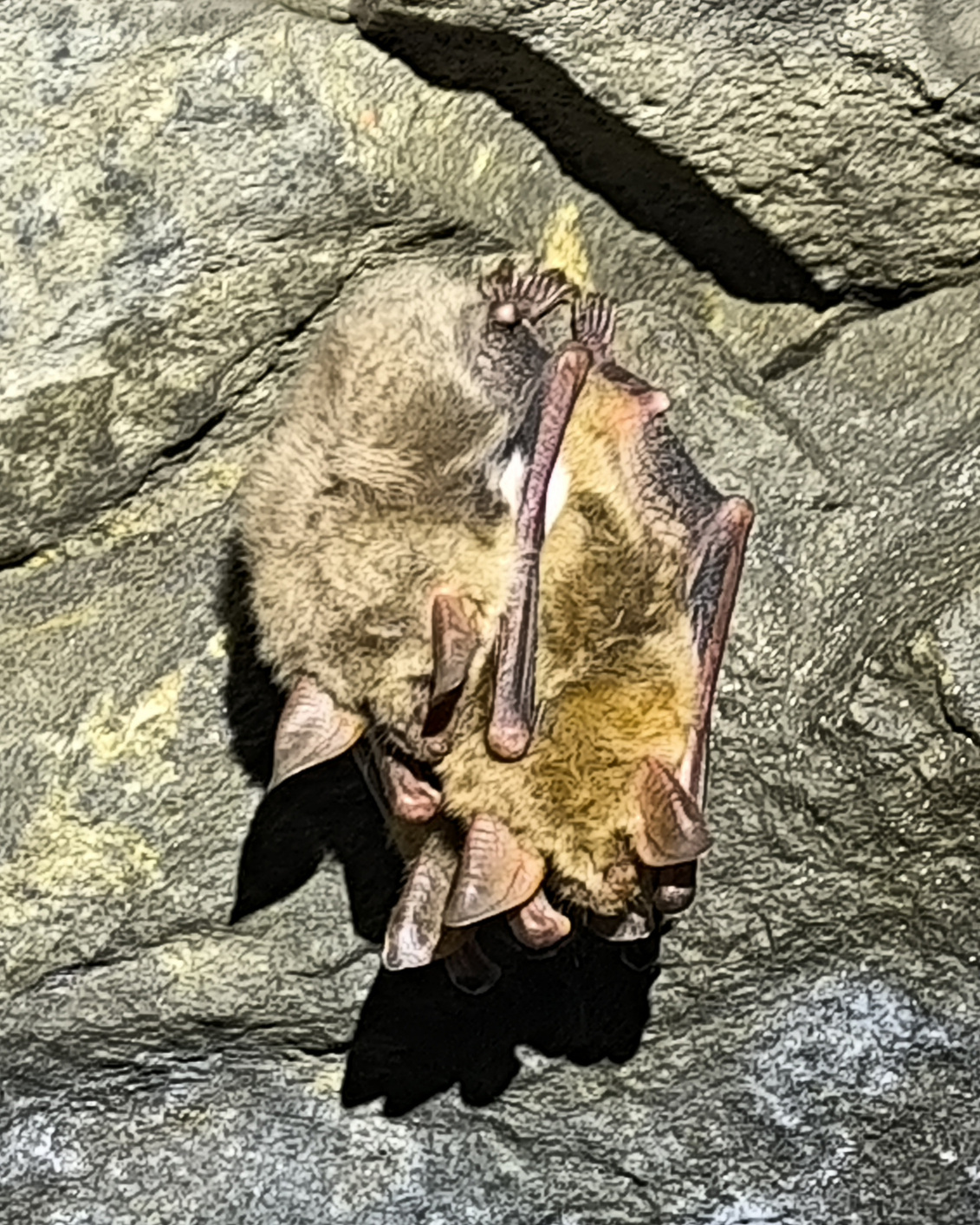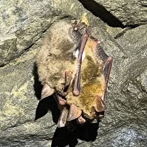 Informovaní studenti a studentky poté v závěsu za panem Bufkou dorazili k prvnímu cíli naší cesty, bývalým zlatonosným šachtám. Ty jsou v zimě zimovištěm až 17 druhů netopýrů, kteří také byli hlavním cílem zastávky. Naskytl se nám tak pohled na rekordních (aspoň pokud jde o dosavadní exkurze) 7 druhů netopýrů, konkrétně pak netopýr velký, ušatý, vodní, vousatý, řasnatý, i kriticky ohrožený netopýr černý a vrápenec malý. Zajímavým oživením bylo také blízké setkání s kunou skalní, která si z jedné ze šachet udělala úkryt a spíž. Ta si, vyrušená od své snídaně, mezi studenty doslova prorazila cestu ven z jeskyně a nechtěně se při tom vykoupala.