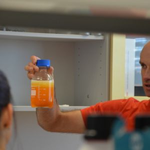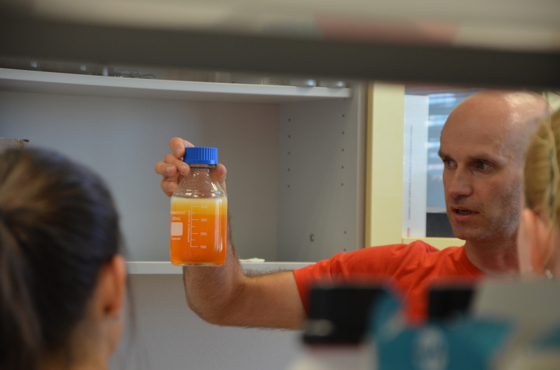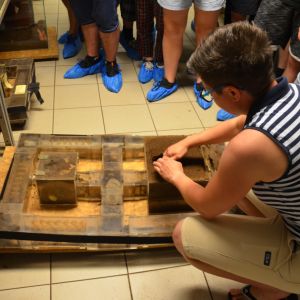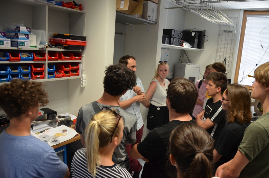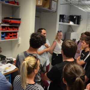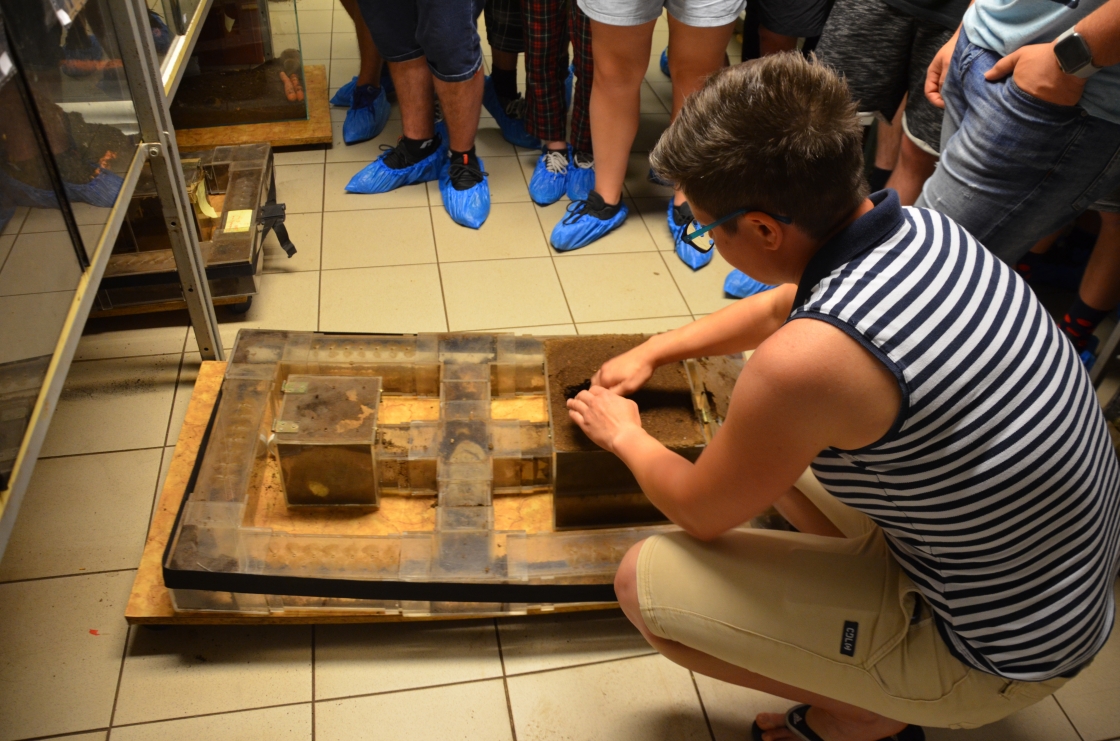 Poté se žáci rozdělili na dvě poloviny, z nichž jedna navštívila chov rypošů a poslechla si podrobné povídání o jejich ekologii a výzkumu, který zde na fakultně probíhá, zatímco drhá polovina si mohla prohlédnout chemické laboratoře a laboratoř plazmatu, kde se vědci z Katedry fyziky zabývají vývojem nanovrstev, které se využívají např. v leteckém průmyslu. Skupiny se po půl hodině vyměnily.