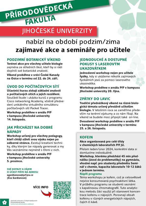 Kompletní nabídku včetně kontaktu na přihlášení naleznete v uvedených odkazech a plakátu.