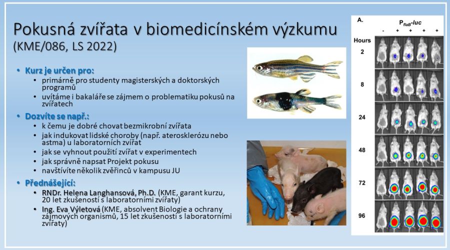 Studenti si mohou v letním semestru zapsat předmět Pokusná zvířata v biomedicínském výzkumu KME/086.