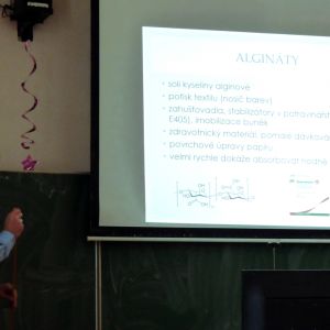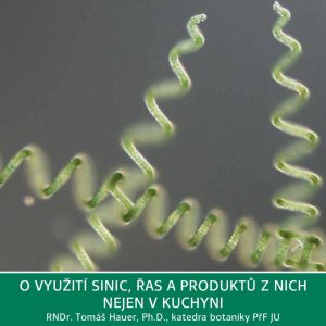 Tomáš Hauer z Katedry botaniky představil tyto organismy především z jejich pozitivní stránky – demonstroval mnoho příkladů, kdy jsou sinice a řasy nebo produkty a látky z nich získávány a využívány člověkem. Posluchači se tak dozvěděli, kde všude se s těmito látkami a produkty v běžném životě mohou setkat a že to není jen při návštěvě sushi baru.