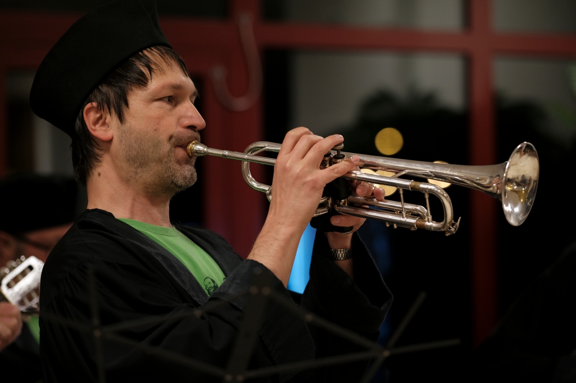 První jarní den proběhlo na Přírodovědecké fakultě neoficiální předání děkanské funkce za doprovodu Šuspova kakofonického souboru (Šukas).