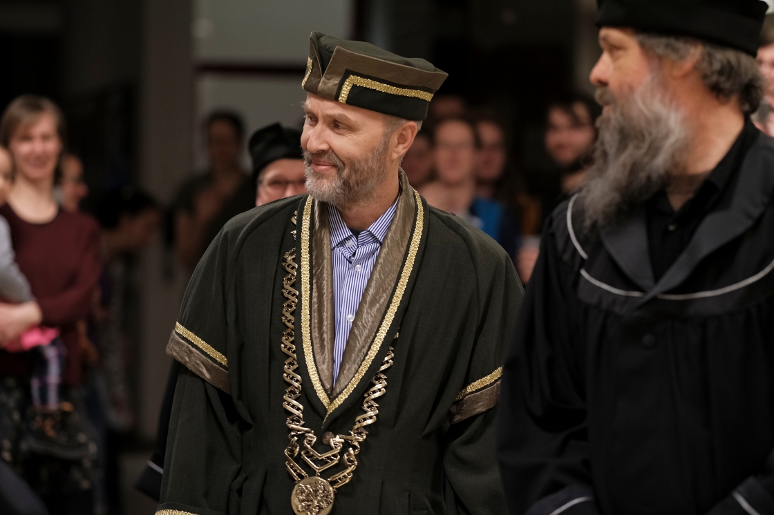 Stávající děkan prof. František Vácha předal symbolicky žezlo své kolegyni prof. Hance Šantrůčkové. Oficiální jmenování proběhne 1. dubna 2019.