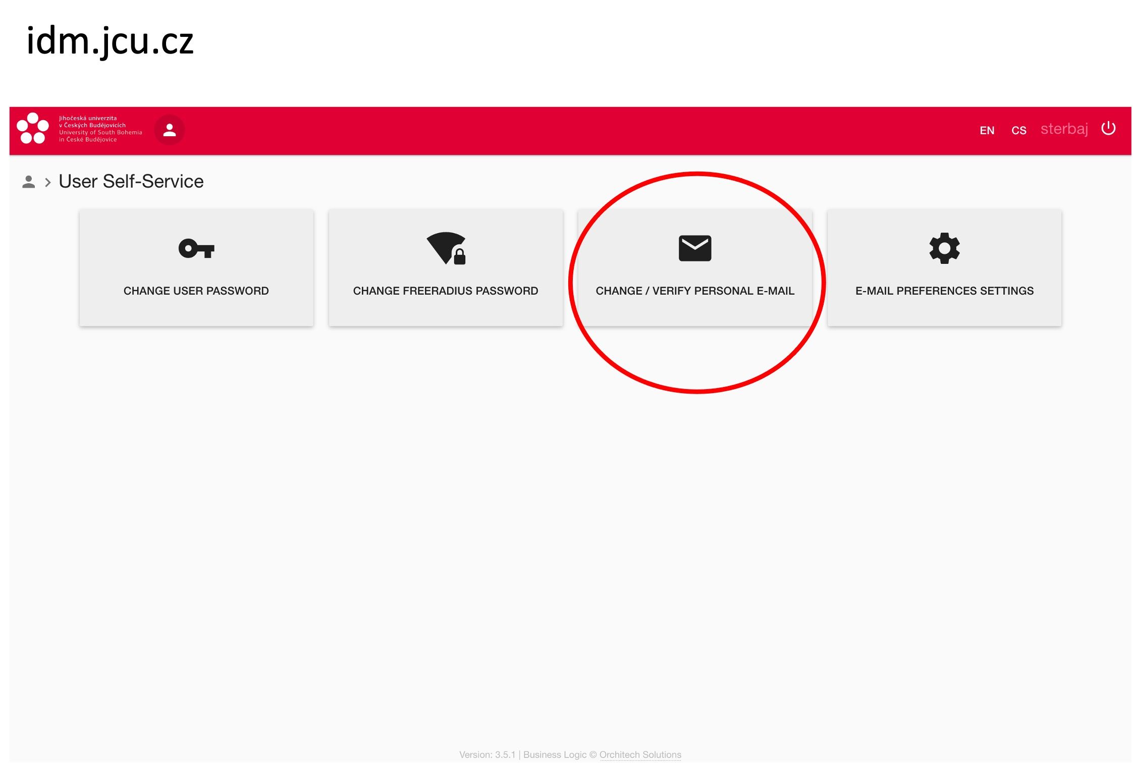 Pro možnost přeposílání si nastavte a ověřte osobní e-mailovou adresu na adrese idm.jcu.cz.
