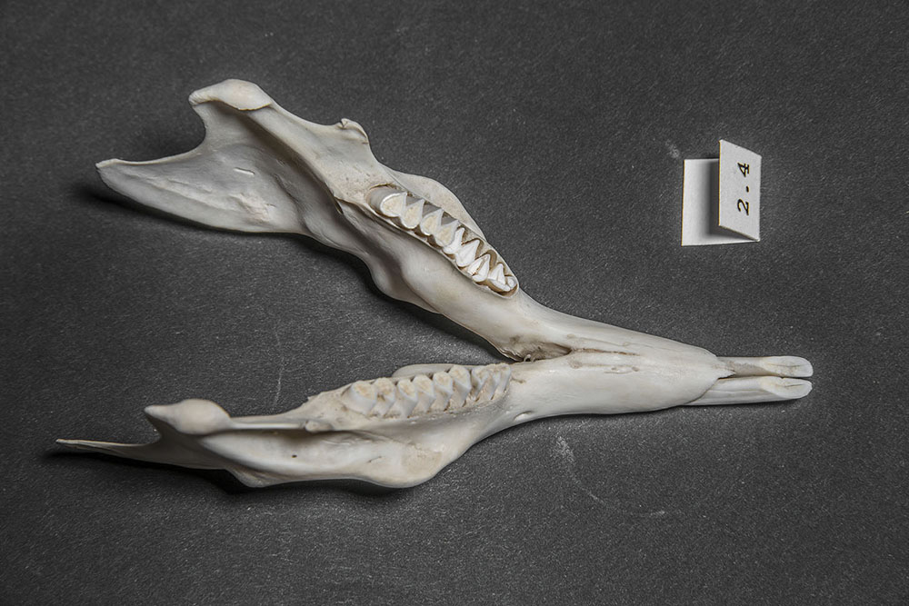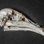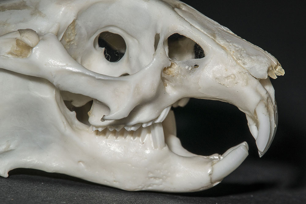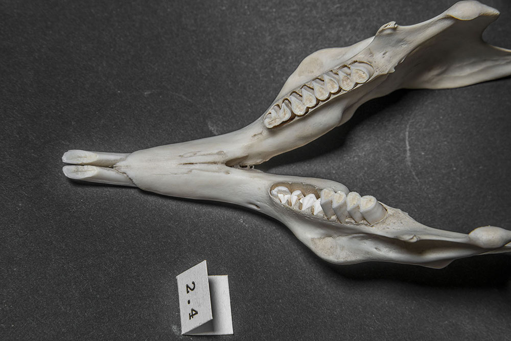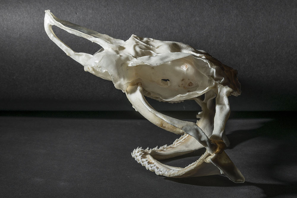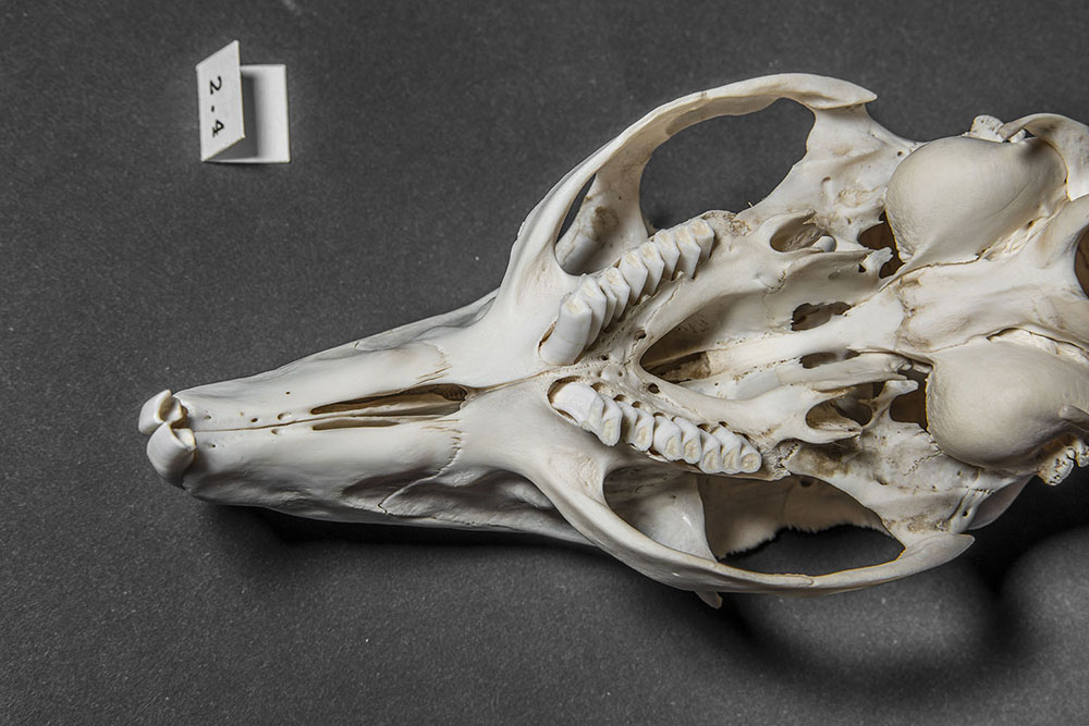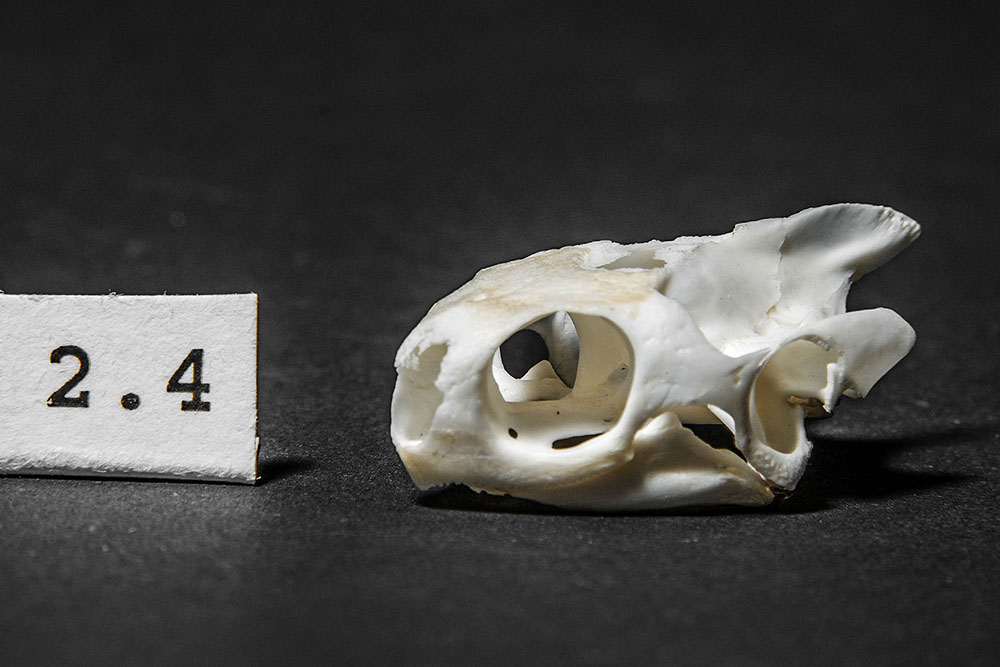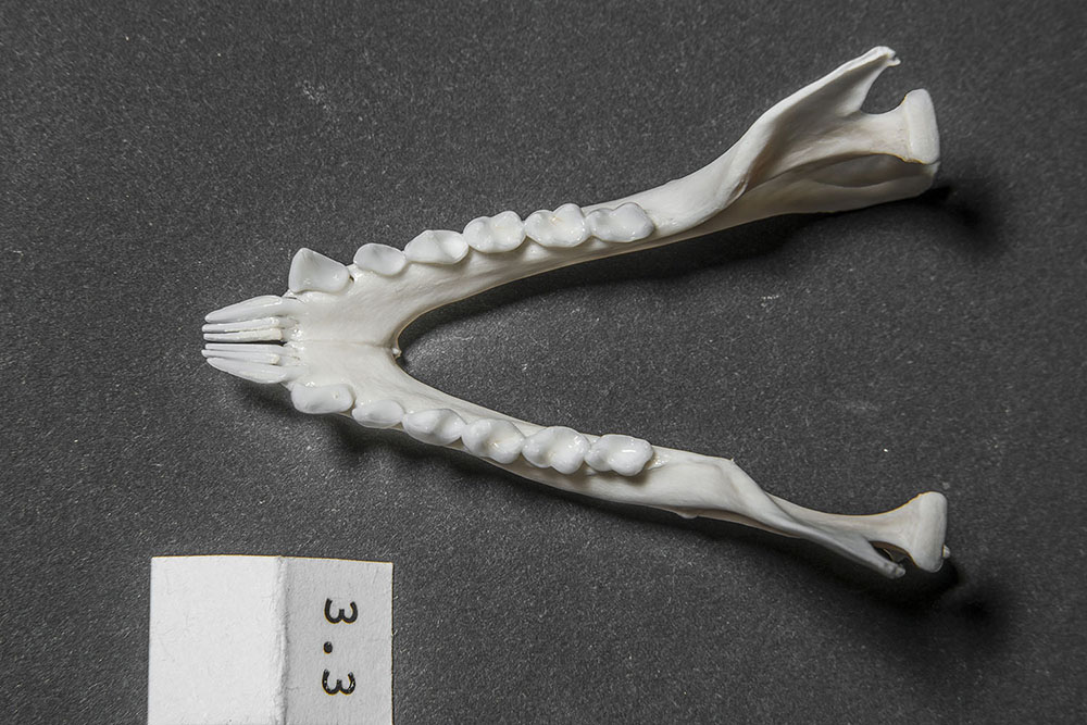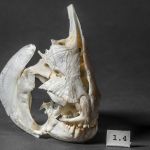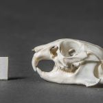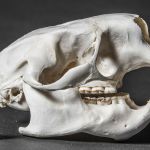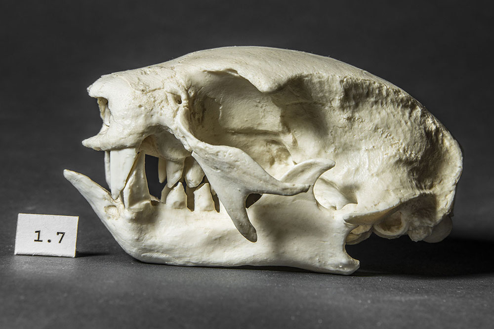 Klokan rudokrký Macropus rufogriseus (1.2), vakoveverka páskovaná Dactylopsila trivirgata (1.3) a vačice virginská Didelphis virginiana (1.4) jsou vačnatci. Vačnatci mívají oproti placentálům menší mozkovny a v horní čelisti více řezáků než v čelisti dolní. V jedné zubní řadě mají také menší počet třenových zubů (3 místo 4) a větší počet stoliček (4 místo 3). Jednoduchým znakem pro rozlišení obou skupin je dovnitř zahnutý angulární výběžek spodní čelisti vačnatců (srovnej např. s králíkem 2.2). Lebka klokana je příkladem býložravého vačnatce, který se živí potravou způsobující vyšší obrus zubů. Čelisti jsou zkrácené, dva dolní řezáky velké a chrup redukovaný s nápadnou mezerou za řezáky (diprotodontní chrup). Naopak na lebce vačice virginské jsou nápadné nezkrácené čelisti s větším počtem nespecializovaných řezáků a tvarově rozrůzněnými ostatními zuby (polyprotodontní chrup).
