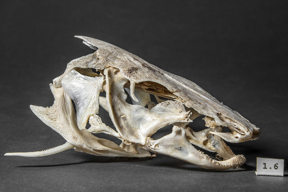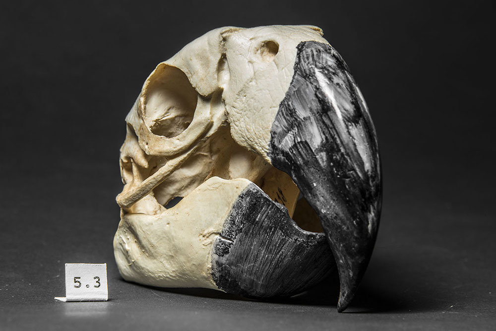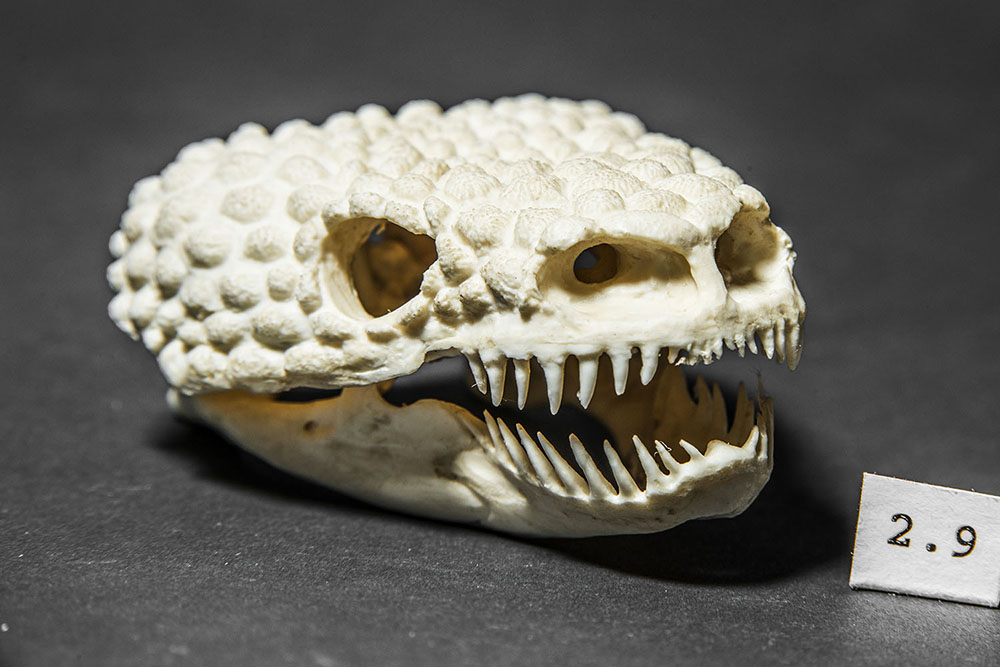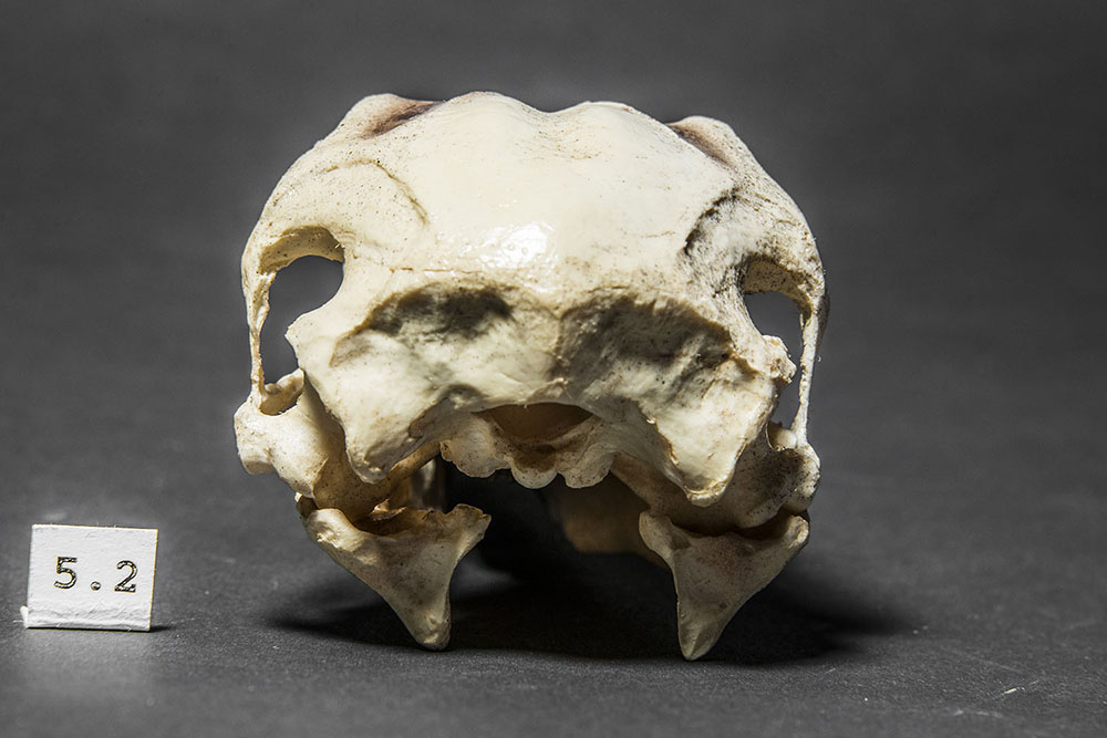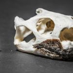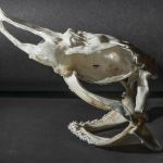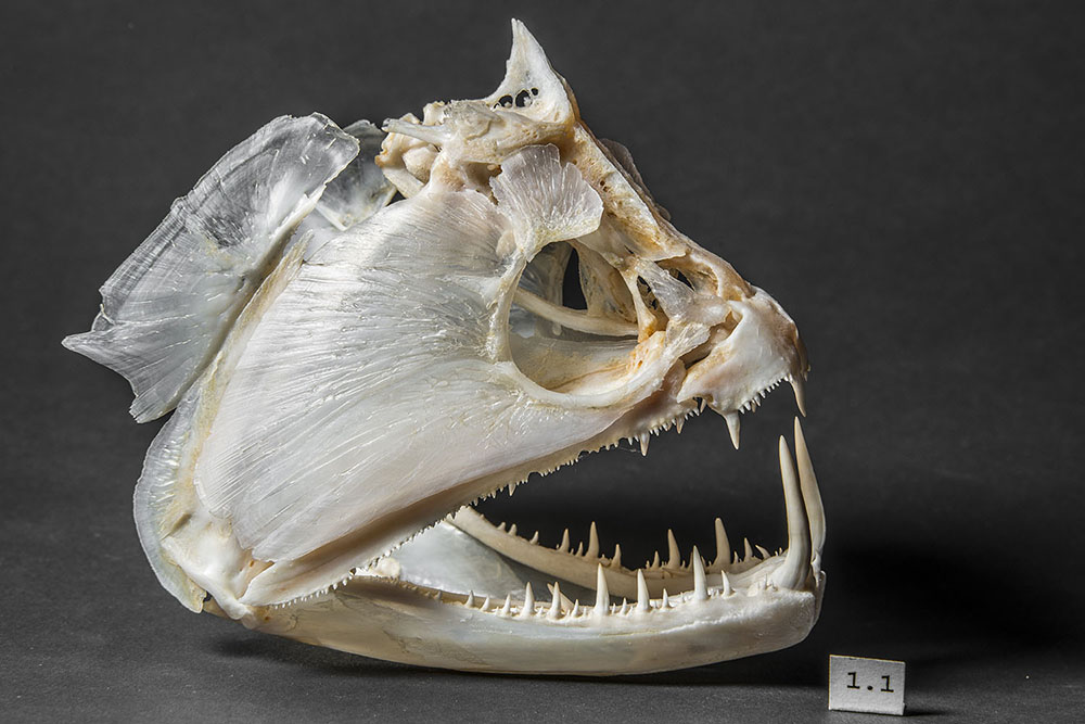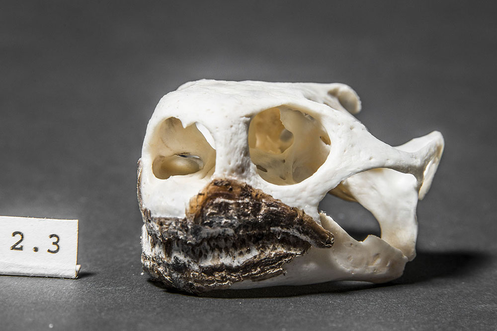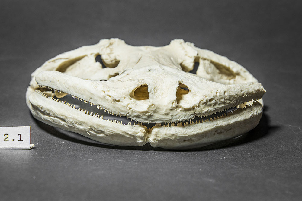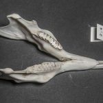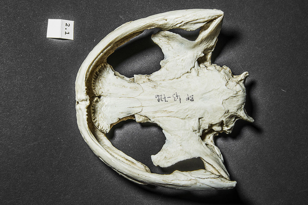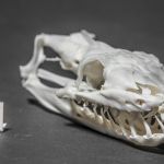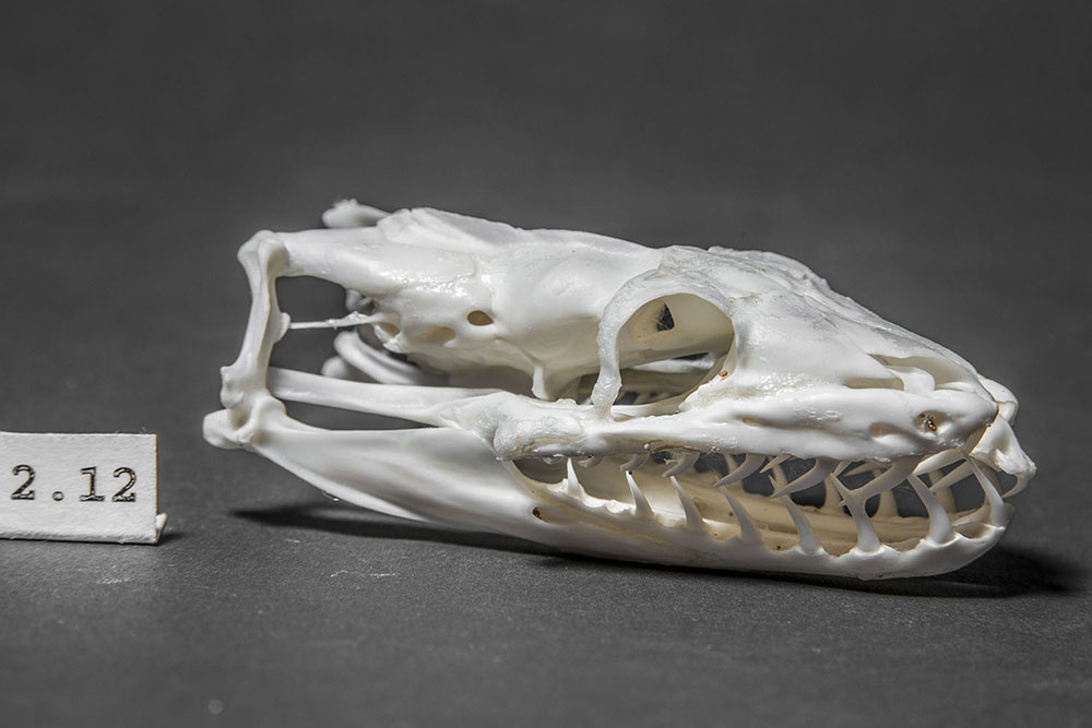 Klokan rudokrký Macropus rufogriseus (1.2), vakoveverka páskovaná Dactylopsila trivirgata (1.3) a vačice virginská Didelphis virginiana (1.4) jsou vačnatci. Vačnatci mívají oproti placentálům menší mozkovny a v horní čelisti více řezáků než v čelisti dolní. V jedné zubní řadě mají také menší počet třenových zubů (3 místo 4) a větší počet stoliček (4 místo 3). Jednoduchým znakem pro rozlišení obou skupin je dovnitř zahnutý angulární výběžek spodní čelisti vačnatců (srovnej např. s králíkem 2.2). Lebka klokana je příkladem býložravého vačnatce, který se živí potravou způsobující vyšší obrus zubů. Čelisti jsou zkrácené, dva dolní řezáky velké a chrup redukovaný s nápadnou mezerou za řezáky (diprotodontní chrup). Naopak na lebce vačice virginské jsou nápadné nezkrácené čelisti s větším počtem nespecializovaných řezáků a tvarově rozrůzněnými ostatními zuby (polyprotodontní chrup).