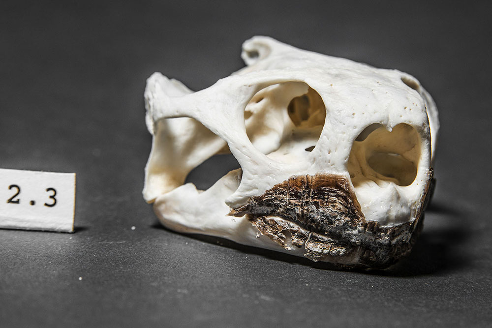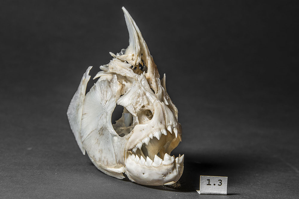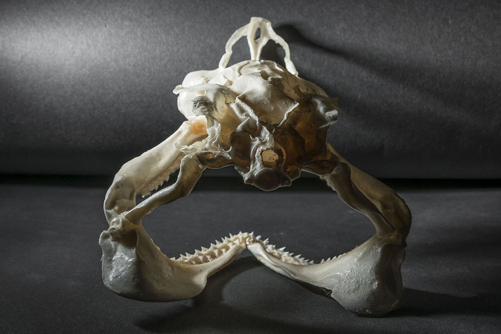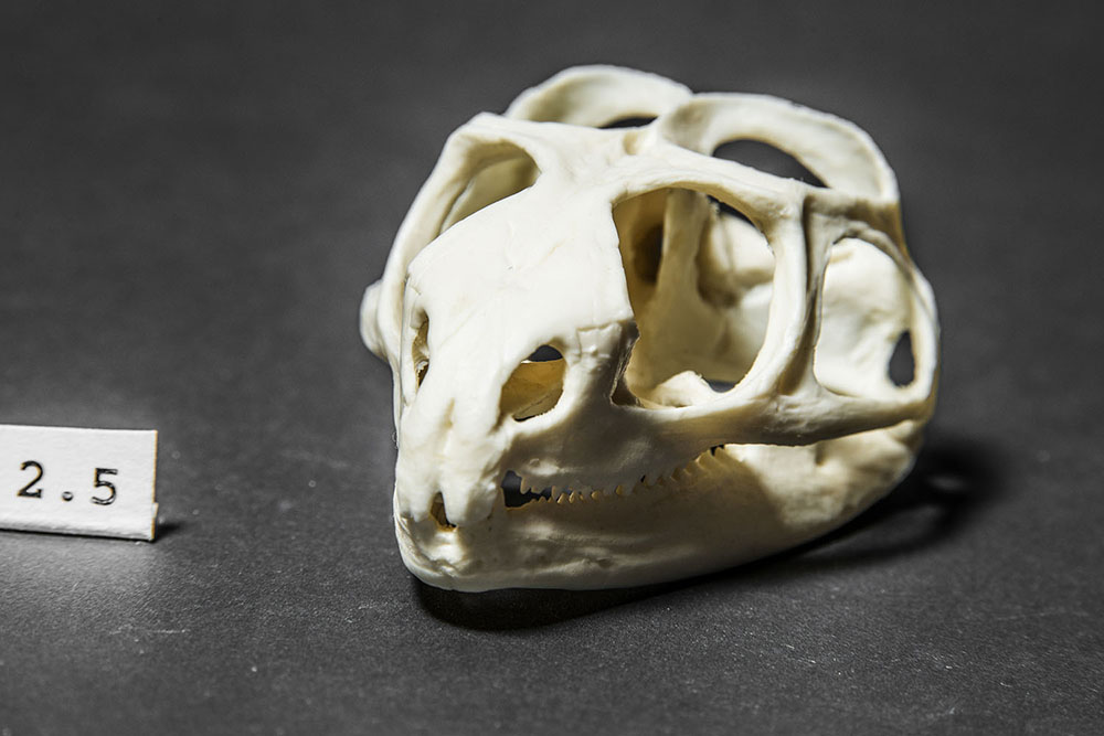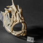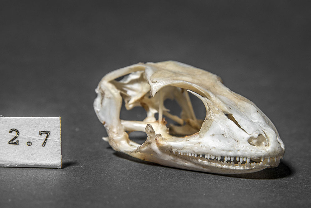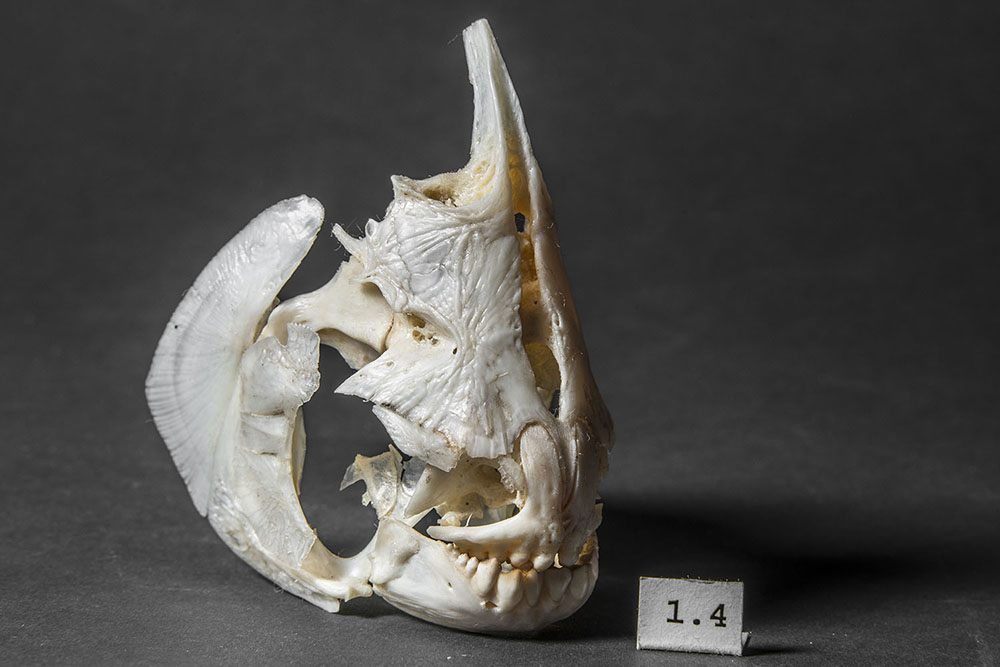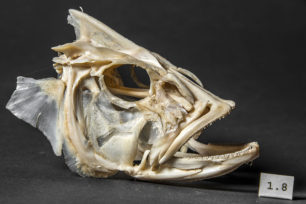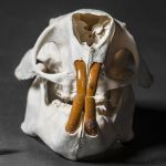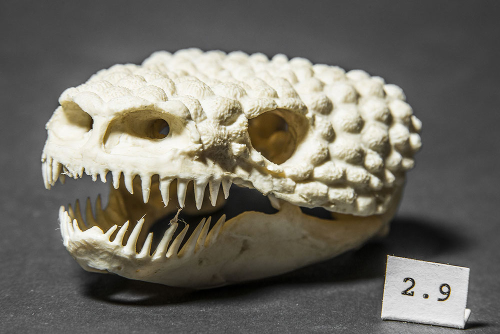 Klokan rudokrký Macropus rufogriseus (1.2), vakoveverka páskovaná Dactylopsila trivirgata (1.3) a vačice virginská Didelphis virginiana (1.4) jsou vačnatci. Vačnatci mívají oproti placentálům menší mozkovny a v horní čelisti více řezáků než v čelisti dolní. V jedné zubní řadě mají také menší počet třenových zubů (3 místo 4) a větší počet stoliček (4 místo 3). Jednoduchým znakem pro rozlišení obou skupin je dovnitř zahnutý angulární výběžek spodní čelisti vačnatců (srovnej např. s králíkem 2.2). Lebka klokana je příkladem býložravého vačnatce, který se živí potravou způsobující vyšší obrus zubů. Čelisti jsou zkrácené, dva dolní řezáky velké a chrup redukovaný s nápadnou mezerou za řezáky (diprotodontní chrup). Naopak na lebce vačice virginské jsou nápadné nezkrácené čelisti s větším počtem nespecializovaných řezáků a tvarově rozrůzněnými ostatními zuby (polyprotodontní chrup).