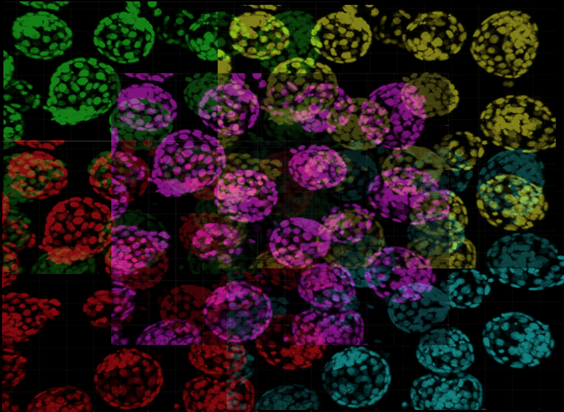 Pseudocoloured mouse (E4.5) blastocysts.