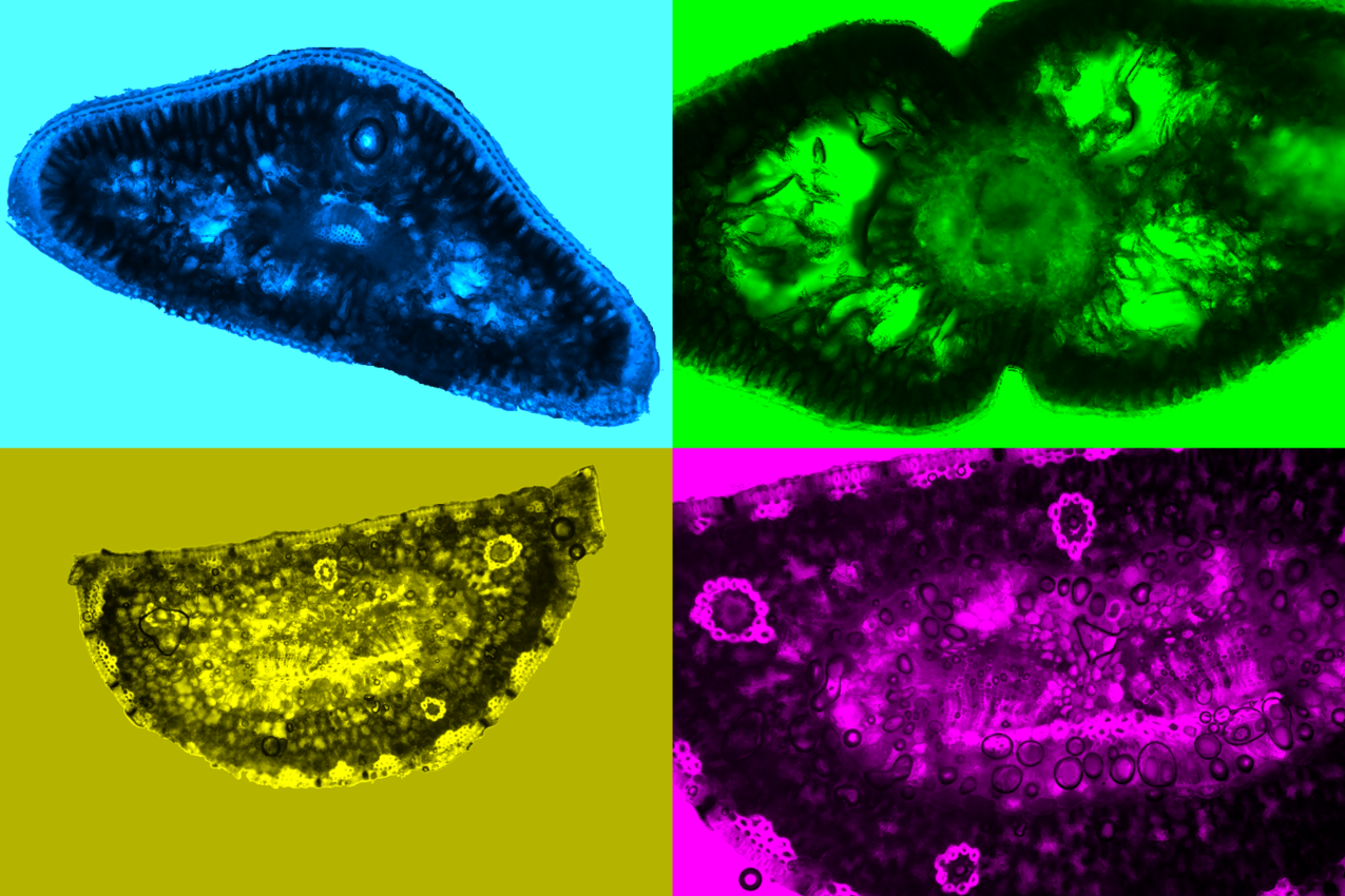 Hidden variability forming a mosaic – variations in cross-section of spruce, Scots pine, black pine, and thuja needles.