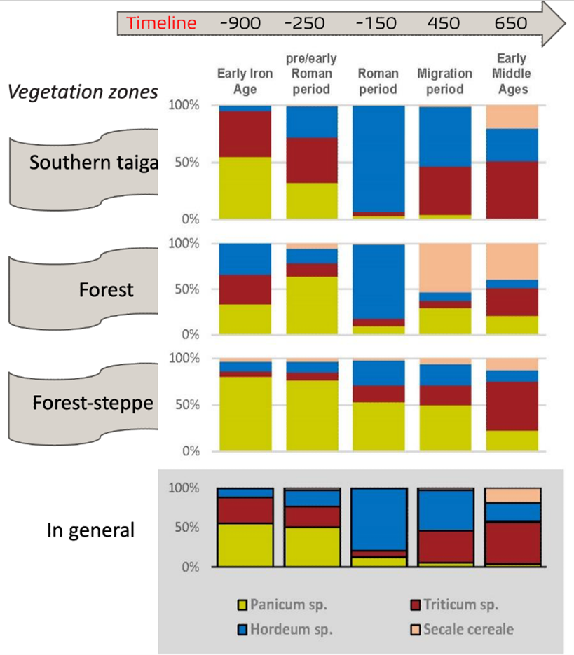 Julia Salova, Leonid Vyazov, Jaromír Beneš. (2024). When Barley and Wheat Meet Millet: Cereal Cultivation Patterns in the Forest and Forest-Steppe of Eastern Europe from the Early Iron Age to the Early Middle Ages. Interdisciplinaria archeologica, 10.24916