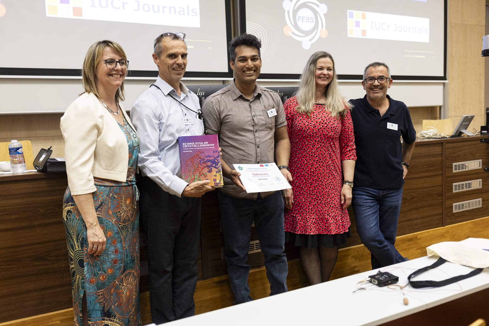 From Tuesday to Friday, the course featured intensive lectures and lab exercises on topics like biophysical techniques, protein crystallization screening, and crystal improvement. Students experimented with their own or model proteins, and engaged in poster sessions and discussions with speakers. Poster prizes were awarded to Tomas Brom (prize of FEBS OpenBio Journal), Alexandra Knopp (IUCr Journals prize), and Yurii Dubanych (prize of FEBS ACC). Anil A. Sohail received a special prize, a dedicated copy of Bernhard Rupp's book. The course concluded with crystal observation and evaluation on Saturday morning.