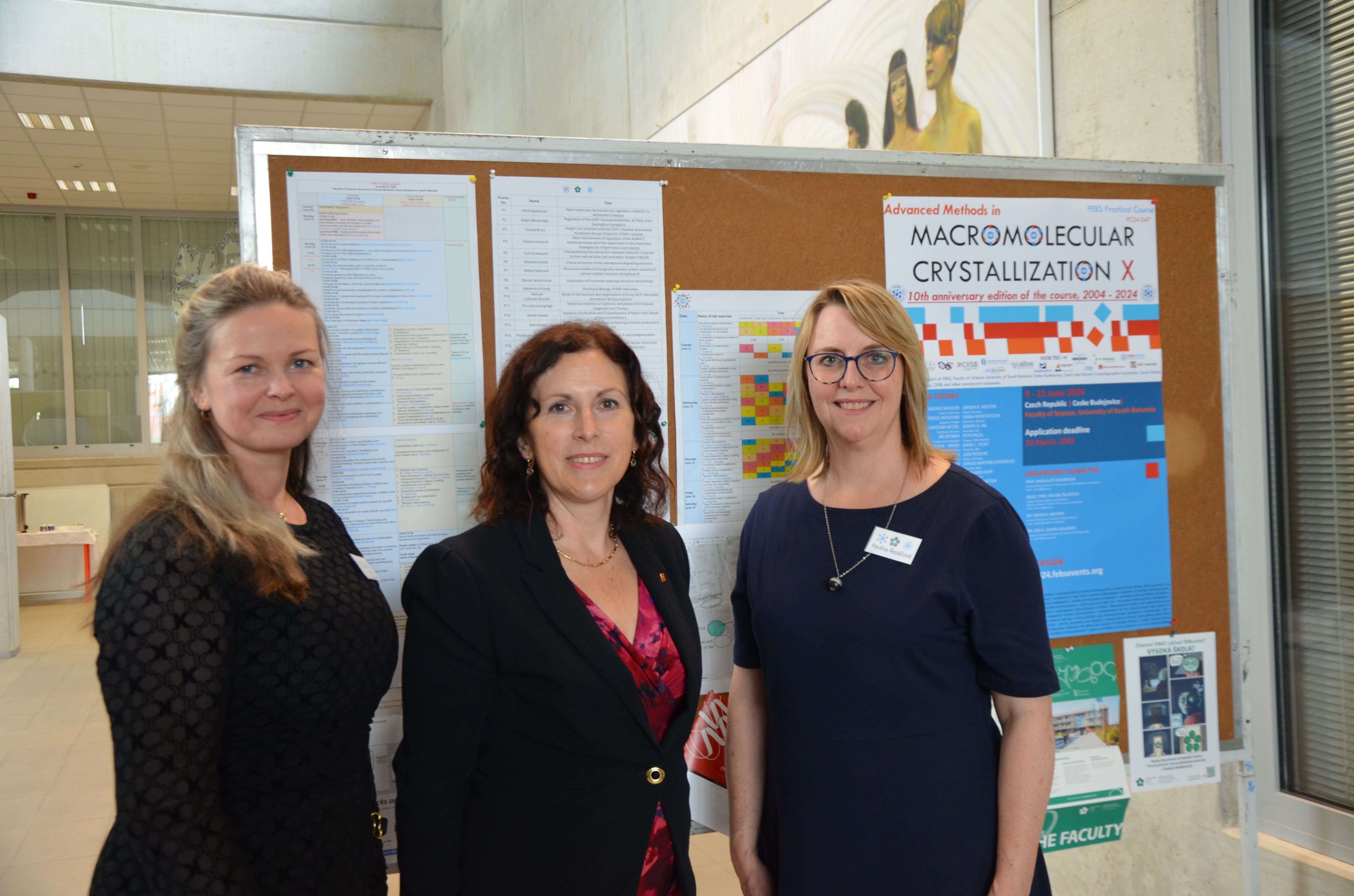 The 10th FEBS practical crystallization course "Advanced methods in macromolecular crystallization" took place at the University of South Bohemia (USB) from June 9th to June 15th, 2024. Organized by Ivana Kuta Smatanova (University of South Bohemia), Pavlina Rezacova (Czech Academy of Sciences), Jeroen R. Mesters (University of Lübeck), and Jose A. Gavira (National Research Council & University of Granada), it was supported by FEBS, eleven sponsoring companies, USB and other scientific Societies. These corporations provided equipment and materials, covered registration fees for eight students, and sponsored three poster prizes and a special prize from Prof. Bernhard Rupp. The course included practical workshops by Douglas Instruments Ltd. and Altium International s.r.o. Thirty-three experts from 12 countries delivered 33 lectures to 24 students.