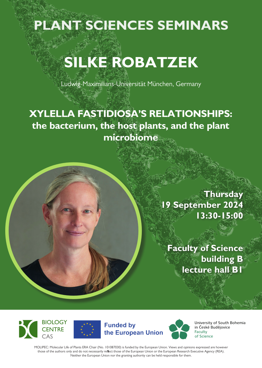 We cordially invite you to a seminar by prof. Silke Robatzek on topic XYLELLA FASTIDIOSA’S RELATIONSHIPS: the bacterium, the host plants, and the plant microbiome. The seminar will be held on Thursday 19 September 2024 from 1:30 p.m. in lecture hall B1.