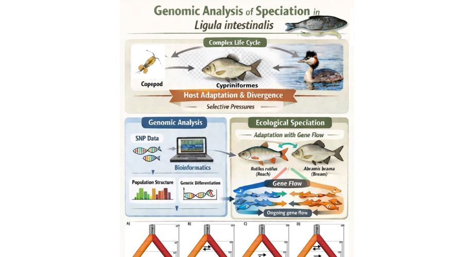 We offer a Bachelor or Master thesis topic focused on genomic analysis of speciation, using the parasitic tapeworm Ligula intestinalis, a well-established model system with a complex life cycle involving multiple hosts (copepods, fish, and birds). In its fish host, where the parasite spends most of its life, it experiences strong host-specific selective pressures, making it an ideal system to study how adaptation to different hosts can drive evolutionary divergence. The thesis will investigate how parasite populations associated with different fish species diverge genetically and how ecological speciation can occur even in the presence of ongoing gene flow, as demonstrated by recent genome-wide SNP analyses.